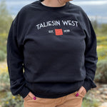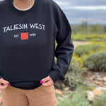 This cozy yet lightweight long-sleeve crewneck sweatshirt calls to mind the classic collegiate style found at academic institutions across the United States. Alongside being the winter home of Frank Lloyd Wright in his final years, Taliesin West was the home of the Taliesin Fellowship for several decades. The Fellowship was "a community of apprentices and their families who lived, worked and studied with Wright first at Taliesin in Wisconsin and later also at Taliesin West in Arizona. The program provided a total learning environment integrating all aspects of the apprentices’ lives with the intent of educating responsible, creative and cultured human beings." At the center of the design is the Whirling Arrow, the symbol of the Fellowship, as well as the year Taliesin West was officially established, 1938.