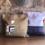 This tote features four different Whirling Arrow designs, showcasing the the progression of the symbol. The ancient Hohokam petroglyph that inspired this design was found on a boulder amongst the over 600 acres Taliesin West, Wright’s winter estate, studio, and school located in Scottsdale, AZ. Wright had stated that it reminded him of two hands clasping in a gesture of friendship.