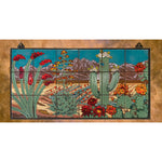 ⋅These hand-glazed tiles have been set and grouted into a sealed metal frame