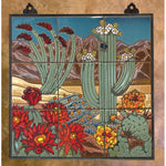 ⋅These hand-glazed tiles have been set and grouted into a sealed metal frame