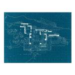 This double-sided, 500 piece puzzle from Galison features Frank Lloyd Wright's famous Fallingwater/Kaufmann House. A beautiful picture of the home's exterior on one side and an aerial blueprint of the grounds on the other make for double the puzzling! One side is matte and the other is glossy for easy sorting.