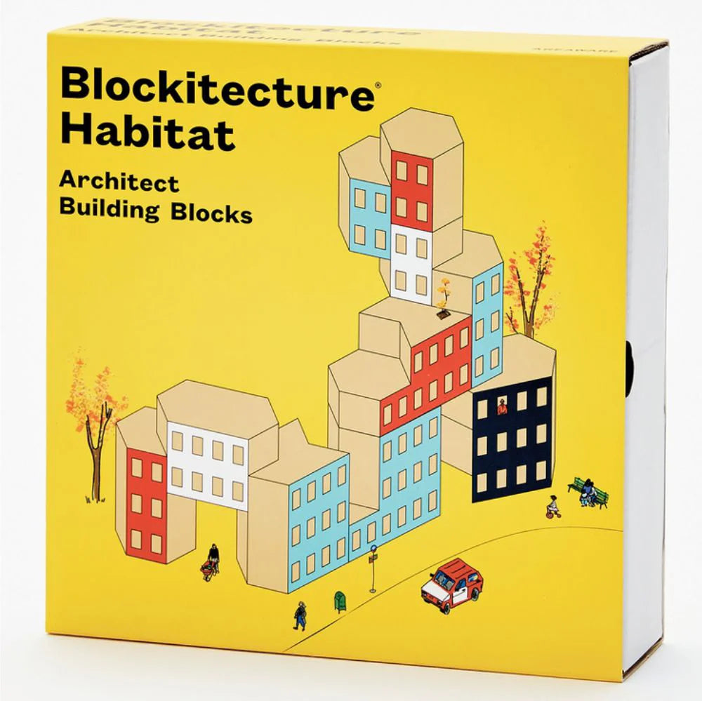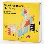 Blockitecture allows you to build the world you want to see. The Habitat set was inspired by Habitat 67, a housing complex created for the 1967 World's Fair. 10 colorfully painted pine wood blocks blocks that cantilever and nest, allow for a wide variety of structures and are Interchangeable with all other Blockitecture sets.