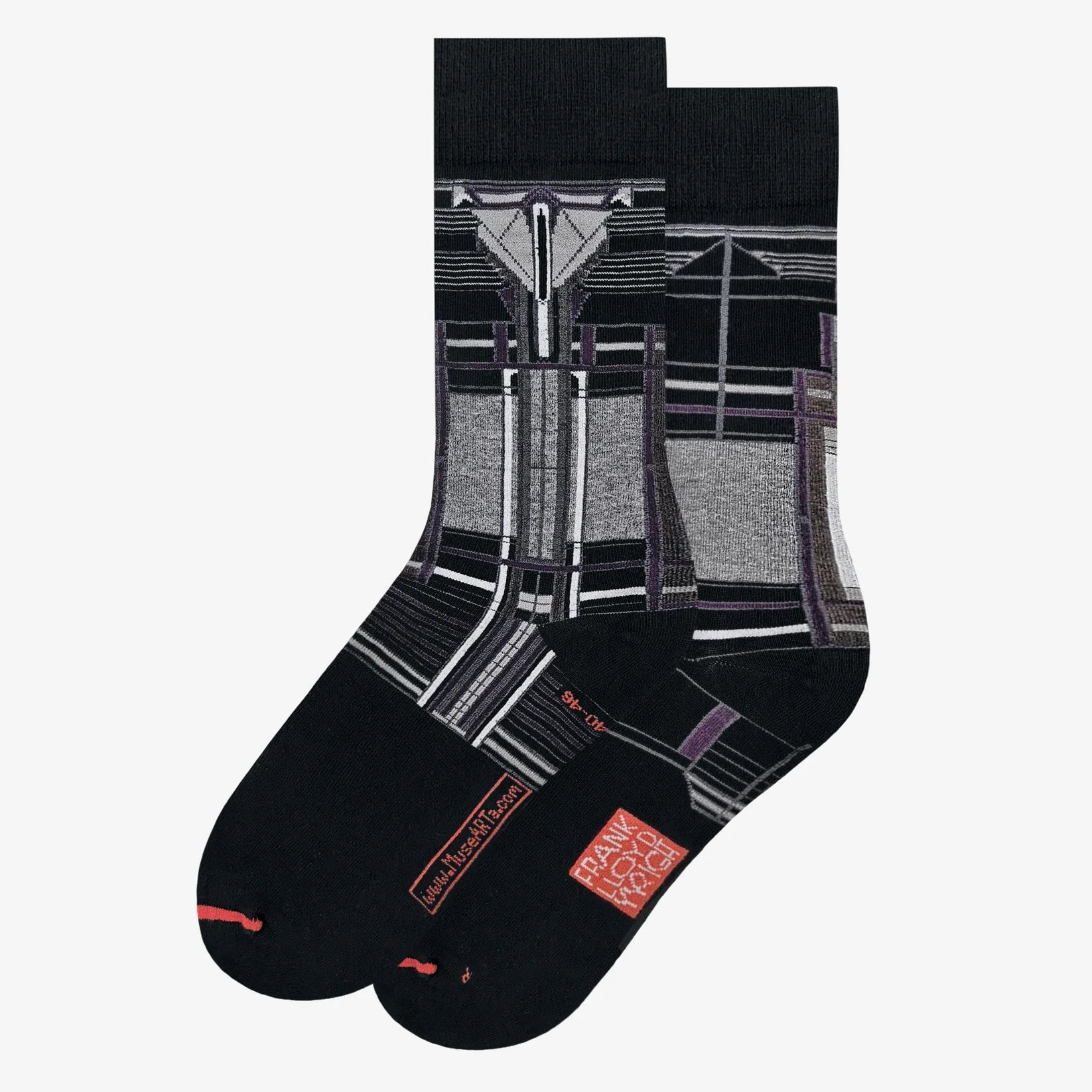 Artistic socks featuring Frank Lloyd Wright's iconic Bradley Art Glass design. Perfect for art lovers and anyone who appreciates something special.