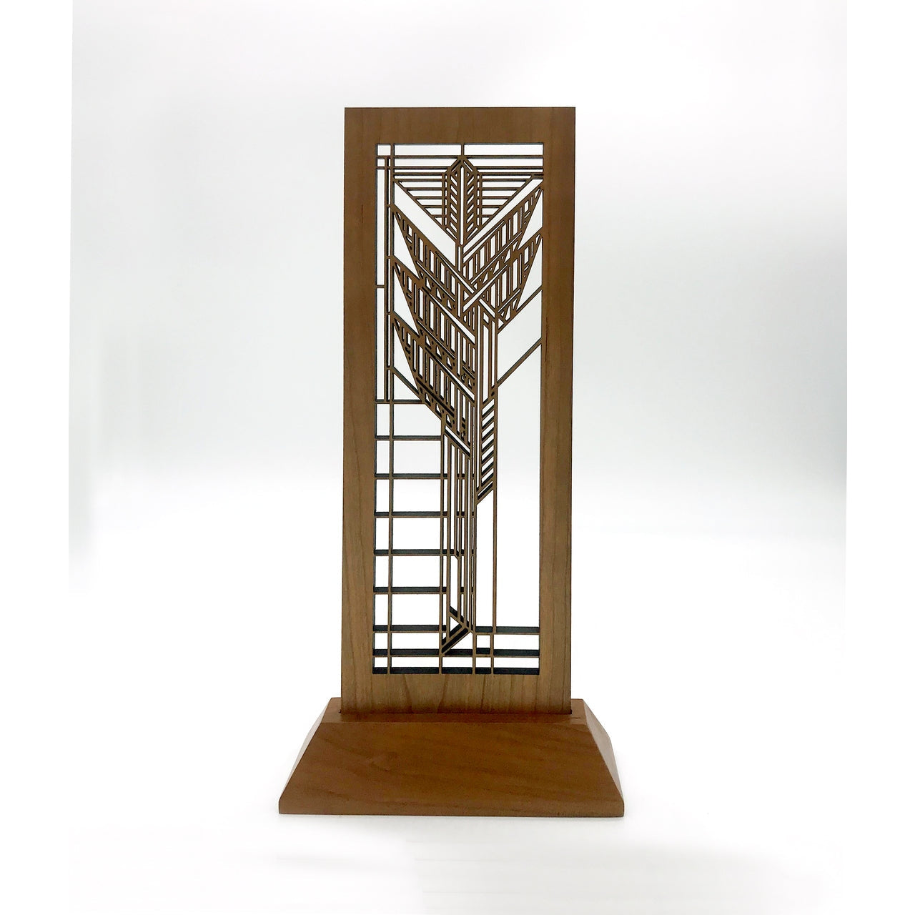 ⋅Made from 1/4" thick cherry veneered MDF and solid cherry wood base