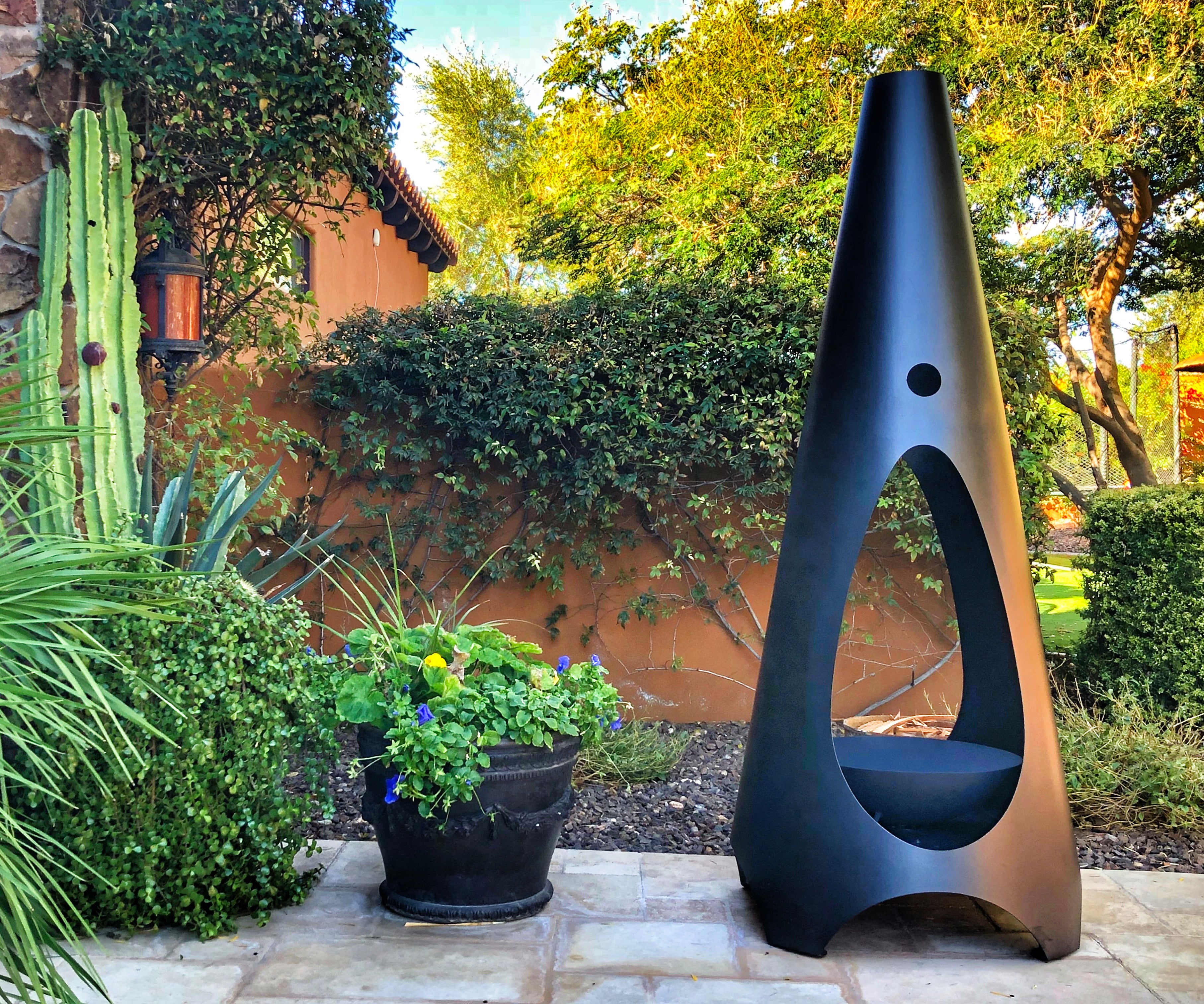 The Bonfire is the supersized version of our award-winning fireplace design. At 7' tall, this piece carries a striking presence in your outdoor space, providing a warm and stylish focal point for large gatherings. It works well in both commercial and residential installations.