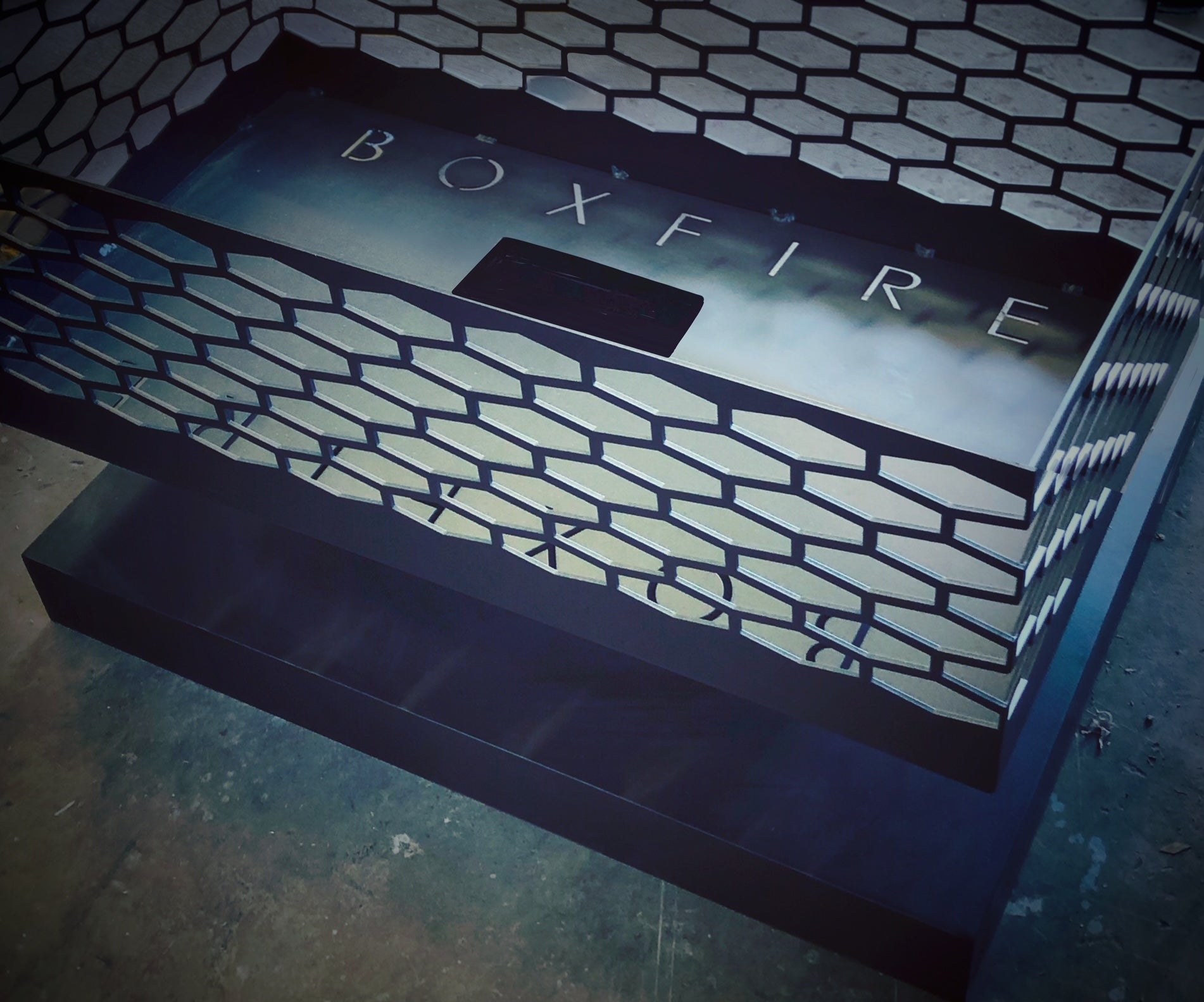 The Boxfire is an elegant solution to the standard "square" outdoor fireplace. This stately 4' wonder will draw you with its mesmerizing pattern and reward you with generous warmth. Make any get together more than just a gathering, create an experience. Burner area can be filled with lava rock or any fire-rated aggregate. Outer edge can be left open or filled with river rocks for a more natural look.