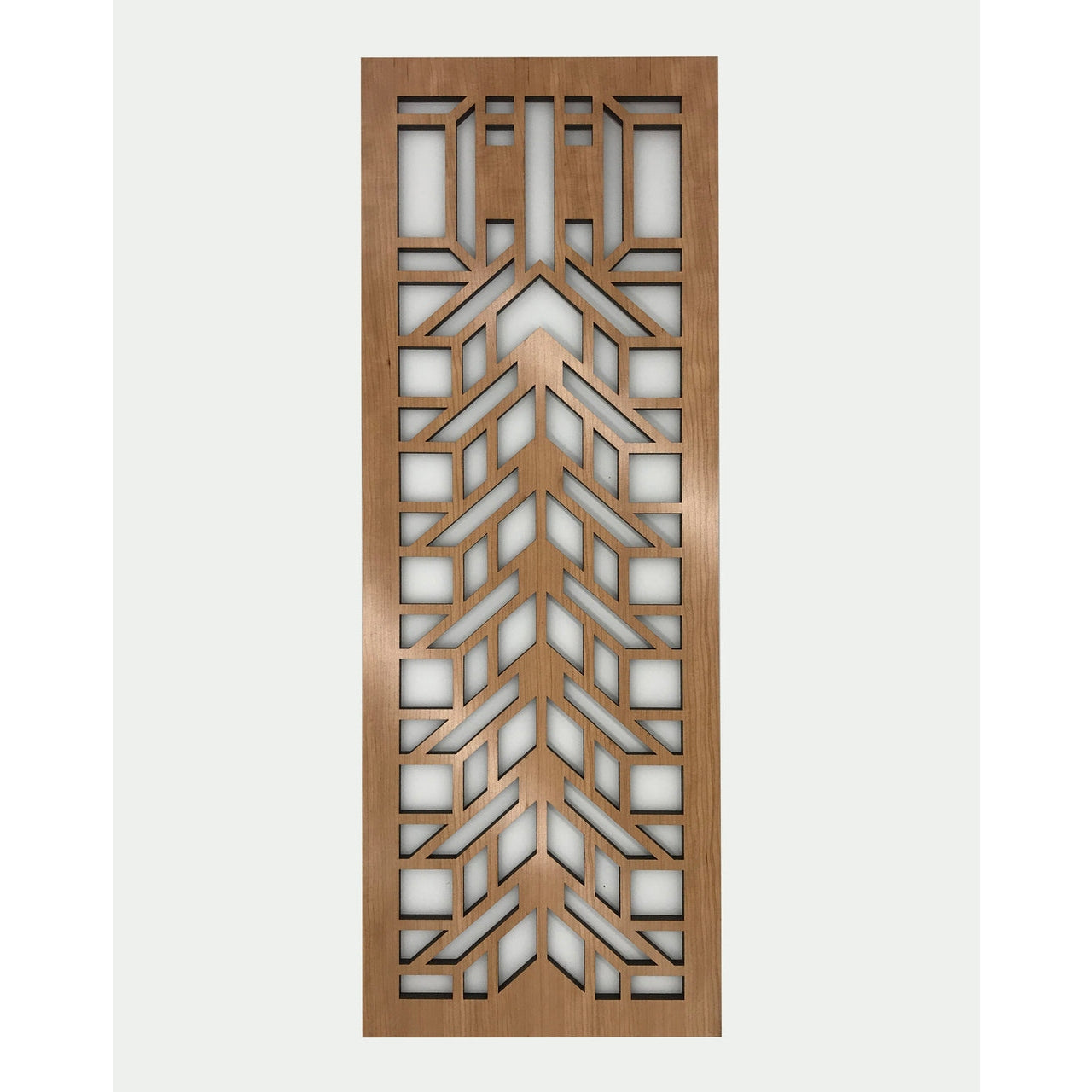 Frank Lloyd Wright referred to this house as "the opus." The 394 pieces of art glass contain eleven interrelated primary art glass themes, some of which are artificially lit from behind. The art glass combines detailed, highly stylized organic designs in colored glass to maintain privacy coupled with large panels of clear glass to bring in the surrounding outdoors. The square and rectangular art glass patterns mirror the geometry of the modular floor plan of the house.