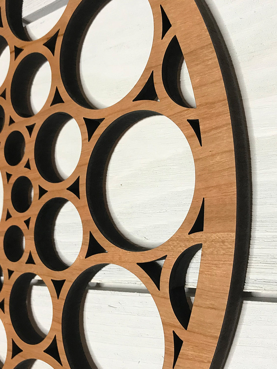 In 1936, third-generation SC Johnson leader Herbert Fisk (H.F.) Johnson, Jr. sought out the architect Frank Lloyd Wright "to build the best office building in the world" in Racine, Wisconsin. This product is adapted from the circular glass dome addition to the SC Johnson Administration Building, designed by Wright in 1943. The dome features meticulously installed concentric circles of Pyrex glass tubing reinforced by a pattern of circular steel bands, which allows light into the space without views.