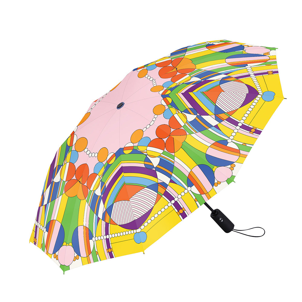 Going places? Stroll local streets or promenade avenues around the globe with this travel umbrella by RainCaper. Small enough to tuck in a pocket or purse, but still large enough to take care of business. This artfully designed Frank Lloyd Wright travel umbrella includes a wrist strap and a matching sleeve.