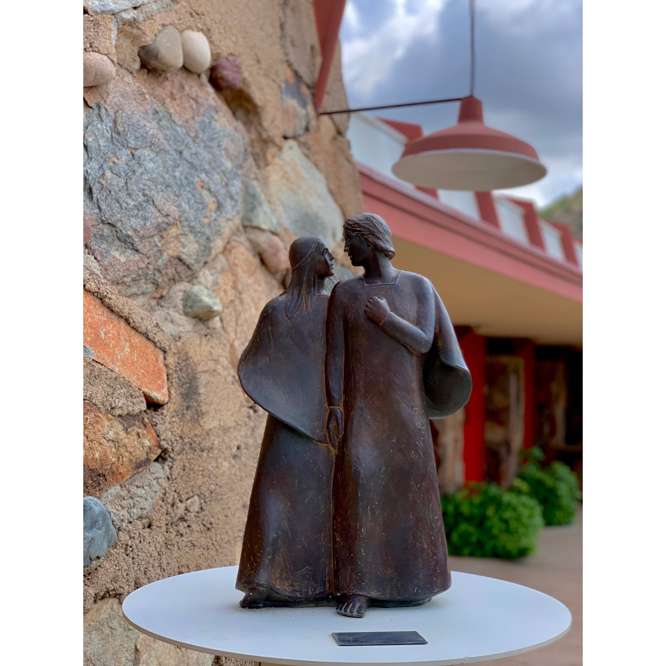 Over time, however, Heloise became known for her sculpture, an interest sparked at Taliesin. Her first major work was a bronze bust of Wright, in 1956, which remains on display in the Garden Room at Taliesin West. Her sculptures have been incorporated throughout the campus at Taliesin West—where they continue to inspire visitors—and throughout structures designed by the Taliesin Associated Architects, the architecture firm created by apprentices of Wright, following his passing.
