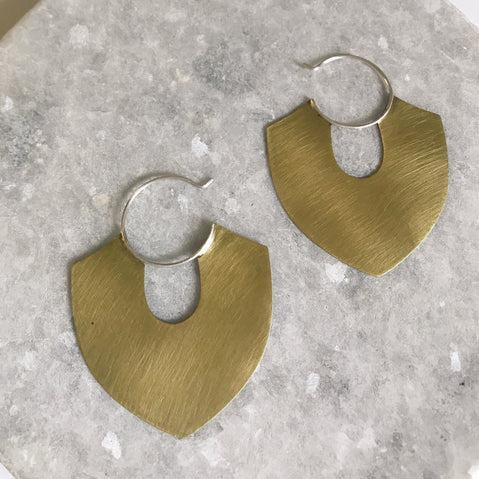 Brass Shield Hoops