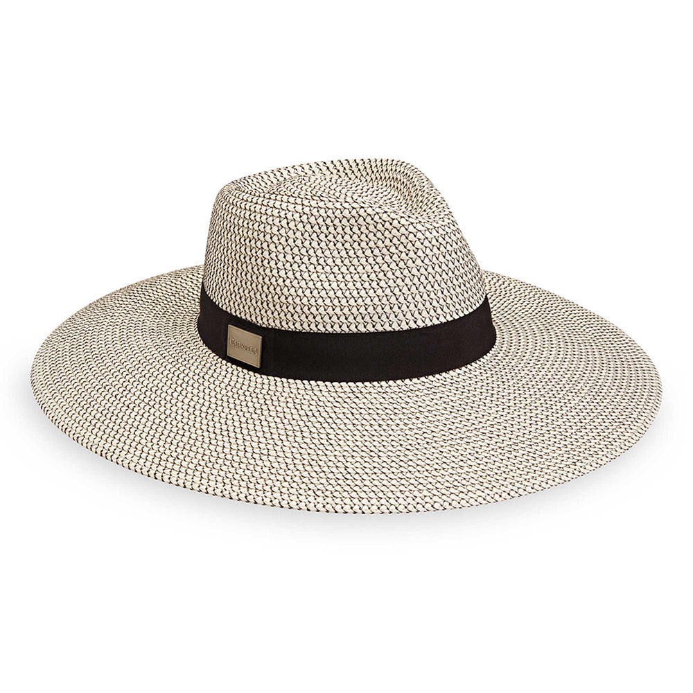 With a sweeping brim, this hat is perfect for lounging in the sun with plenty of protection for the face and neck. The contrasting threads of the woven fabric give it a soft, yet structured look.