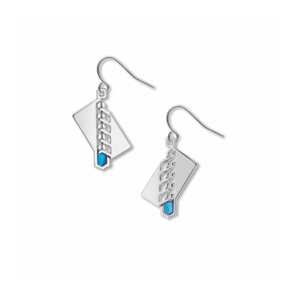 Midway Gardens was an entertainment complex in Chicago and fine example of Wright’s pioneering use of reinforced concrete as an artistic decorative medium. Raised patterns like the one used on these earrings created in concrete precede the types of designs that Wright would later use in his California “textile block” houses of the 1920s.