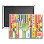 The lively desert landscape abstraction adapted for this product is extracted from the "Saguaro Forms and Cactus Flowers" presentation drawing designed by Frank Lloyd Wright in 1927 as one of a series of twelve seasonal themes for Liberty magazine covers. Liberty magazine considered Wright's designs too avant-garde for the time, and they were not published. Later, the presentation drawings became the basis for interpretations executed in diverse media. The matrix of vertical and horizontal lines, including the circle and square, which create this free-flowing, imaginative desert landscape abstraction is a departure from Wright's earlier linear compositions.