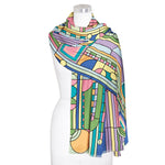 This chic wrap is functional, fashionable, and fabulous, and can be worn in various ways. It's silky-soft and has a delicate eyelash fringe, giving it a touch of elegance. A wearable work of art!