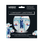 Gain an ethereal illumination indoors or out with this Frank Lloyd Wright Luminary. Simply add water and drop in flameless water-activated LED candles for a magical effect. Resilient and reusable, they easily expand for use and collapse for convenient storage.