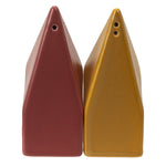 These salt and pepper shakers were designed by Seyla Muise, Industrial Designer for the Frank Lloyd Wright Foundation.