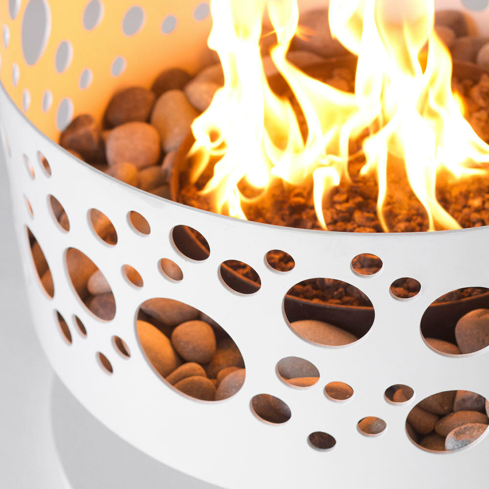 Solfire's sleek silhouette radiates bold design and draws you in with the perfect paring of light and shadow. A chic, minimal pedestal elevates the fire placing it as a central focal point for gathering with friends and family. Fireglass or smooth river rocks (not included) may be placed around the outer ring to be personalized to fit your taste.