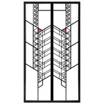 Aline Barnsdall commissioned Wright to build one of his greatest architectural achievements atop a hill in Hollywood, the "Hollyhock House," in honor of her favorite flower. The geometric pattern found in this art glass represents the design detail Wright used in four of the home's adjacent living room sidelights. Barnsdall asked that purple be used to match the color in Japanese screens she owned. The triangles that appear to dance around vertical stalks were designed to represent the flowers and leaves of the hollyhock plant. The Hollyhock House was one of the last structures in which Wright used art glass windows.