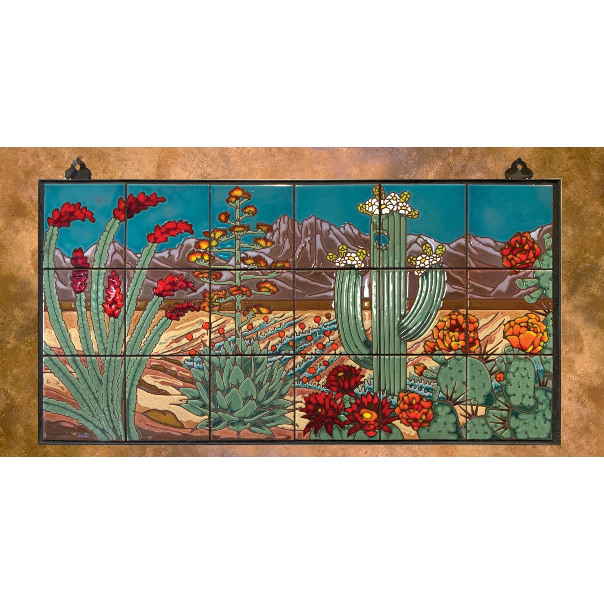 These hand-glazed tiles have been set and grouted into a sealed metal frame.
