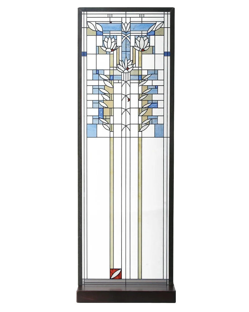 This delicate stylized design of waterlilies, common in the tranquil ponds of the Midwest, is adapted from Frank Lloyd Wright's drawing "Waterlilies," which is thought to be designed for an art glass screen in 1895 but never produced. This early example epitomizes Wright's ability to incorporate themes from nature and exemplifies his philosophy of "organic architecture" - the connecting of the natural world into his architecture as well as his decorative designs.