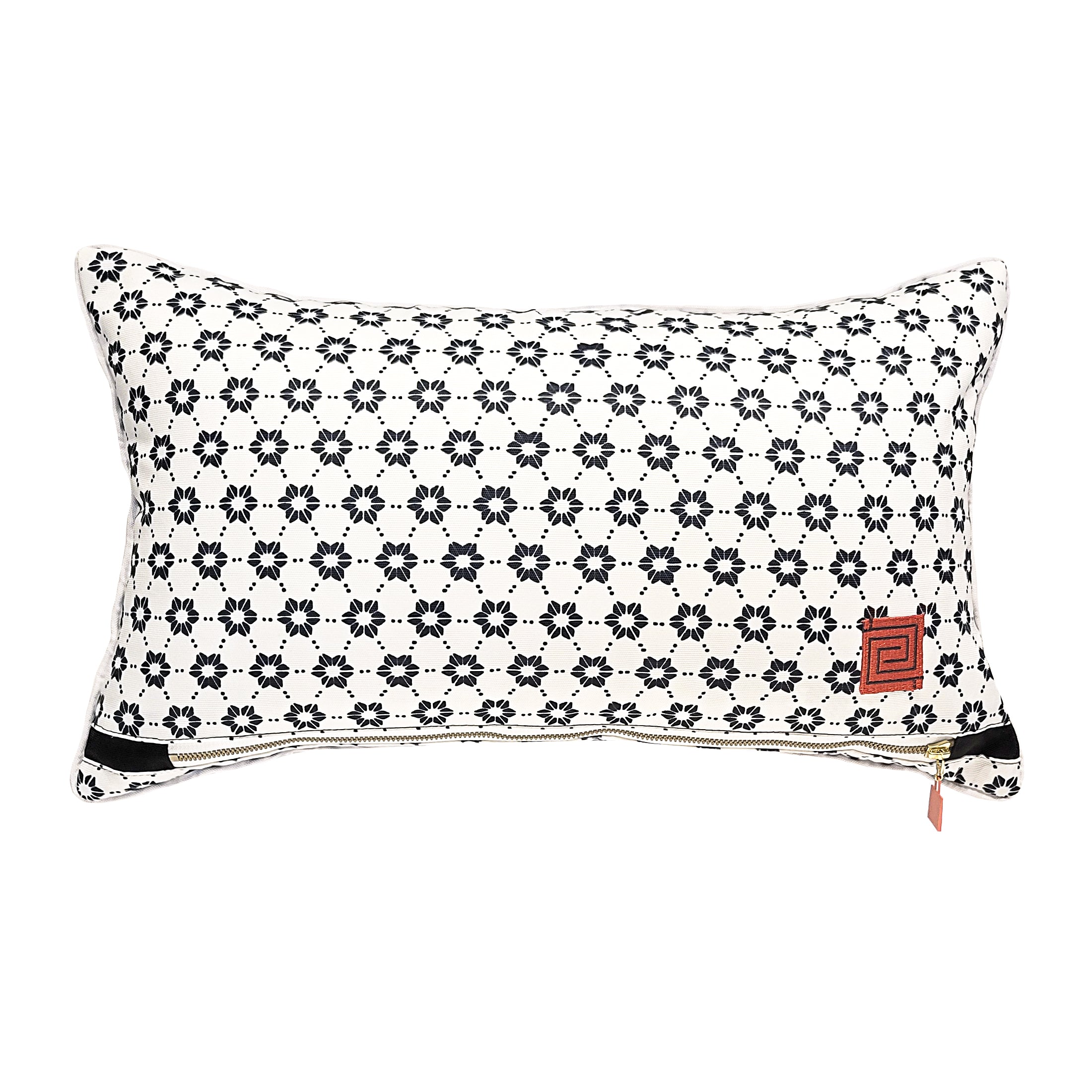 This pillow is inspired by Frank Lloyd Wright's designs of the Imperial Hotel in Tokyo, Japan. He began working on this project in 1913 and the completed hotel opened in 1923. The landmark served as an architectural icon for decades, during which time it survived several earthquakes until its demolition in 1968. Fortunately, the main entrance and hotel lobby were preserved and reconstructed in 1968 at the Museum Meji-mura, in Japan.
