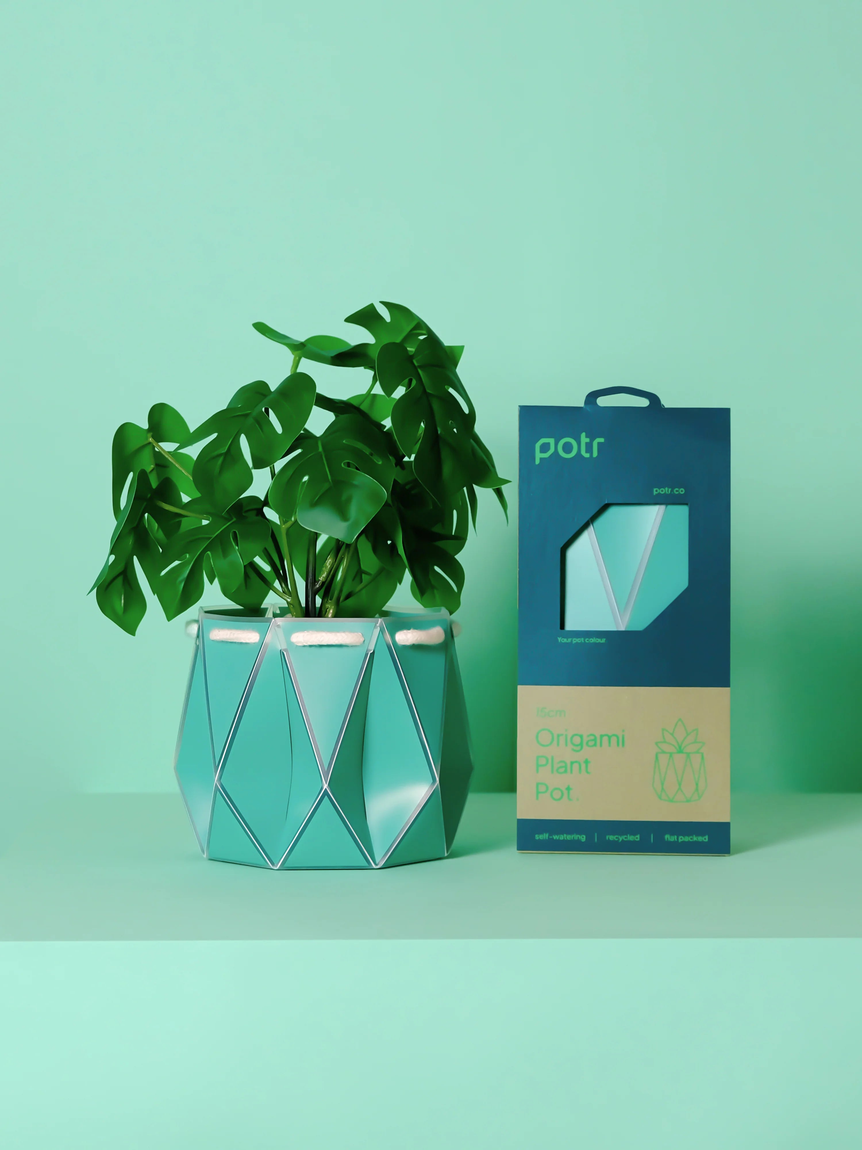 This origami self-watering pot features a unique wicking cord that can keep your plants hydrated for up to 3 weeks. Crafted from recycled waste plastic, it uses 95% less material compared to traditional pots. Say goodbye to the hassle of watering your plants and hello to a new era of plant care.