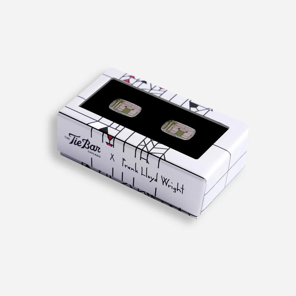 Inspired by Wright’s stained glass designs, these green cufflinks bring geometric precision and architectural color to formal dressing.