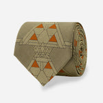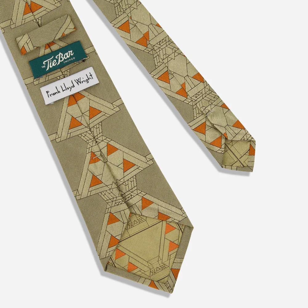 Prairie wheat tones and garden-inspired geometry echo Wright’s Midway Gardens landscape vision in this refined silk tie.