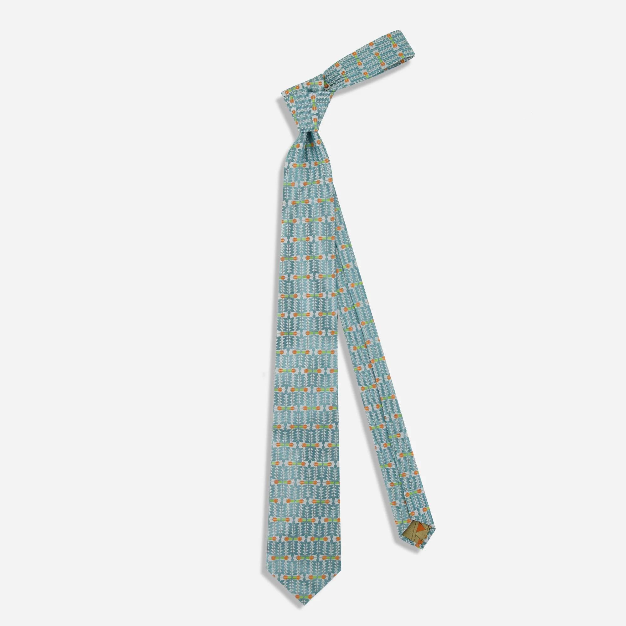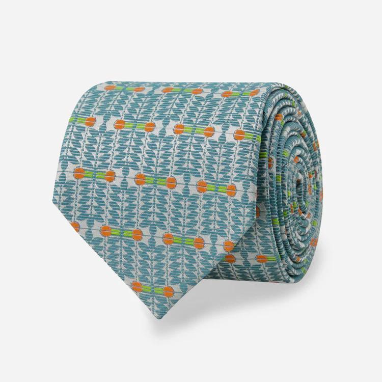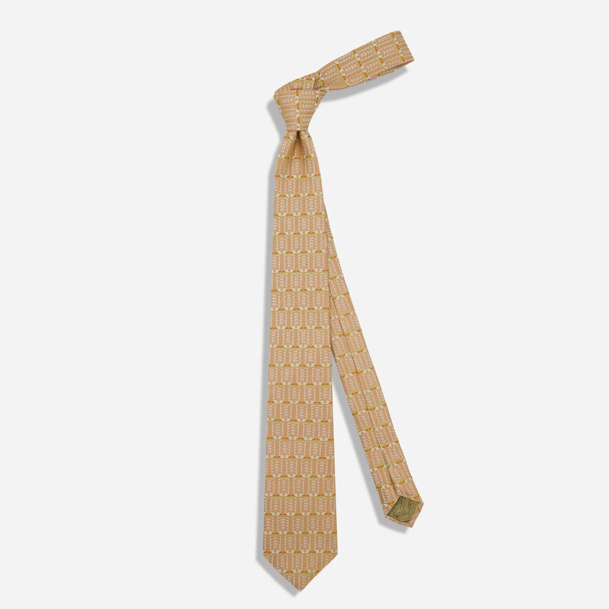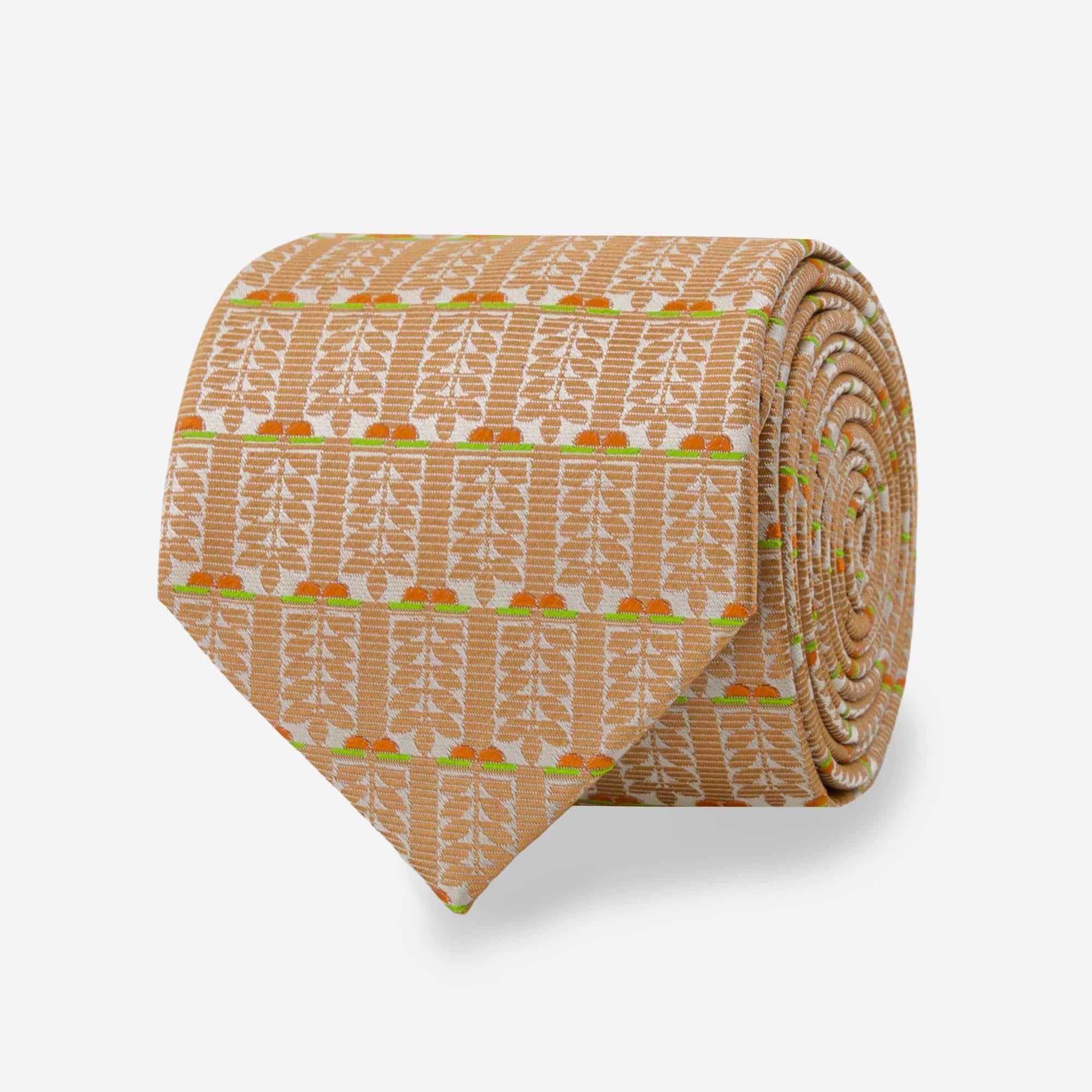 Inspired by Wright’s Midway Gardens sketches, this silk tie features architectural lines in rich dark oak tones for timeless, design-forward style.