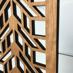 Frank Lloyd Wright referred to this house as "the opus." The 394 pieces of art glass contain eleven interrelated primary art glass themes, some of which are artificially lit from behind. The art glass combines detailed, highly stylized organic designs in colored glass to maintain privacy coupled with large panels of clear glass to bring in the surrounding outdoors. The square and rectangular art glass patterns mirror the geometry of the modular floor plan of the house.