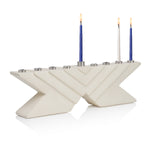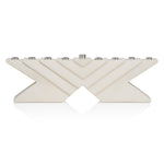 This menorah is inspired by the architecture of Beth Sholom Synagogue, Wright’s only synagogue among a relatively small number of religious commissions. Its power as a building stemmed from the fruitful collaboration between Wright and the congregation’s Rabbi, Mortimer J. Cohen, and is symbolically and liturgically grounded in Judaic tradition. The Synagogue’s glass pyramid is an unforgettable presence in the suburban Philadelphia landscape, day or night.